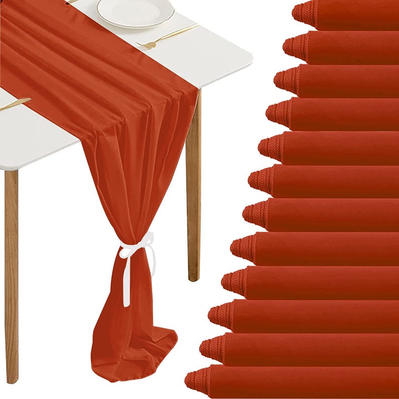 12 Pack - Chiffon Table Runner Elegant Sheer Table Runner 29"X10ft Long Rustic Table Runners for Wedding Bridal Shower Table Brick