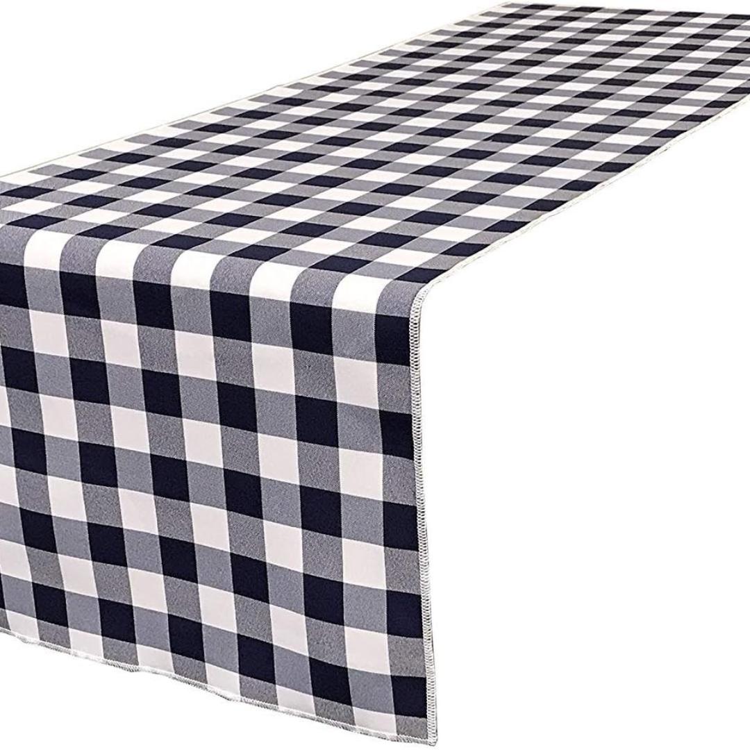14" Wide Polyester Poplin Gingham, Checkered, Plaid Table Runner (White & Navy , 14" Wide x 90" Long) for Party Sweetest Day Wedding