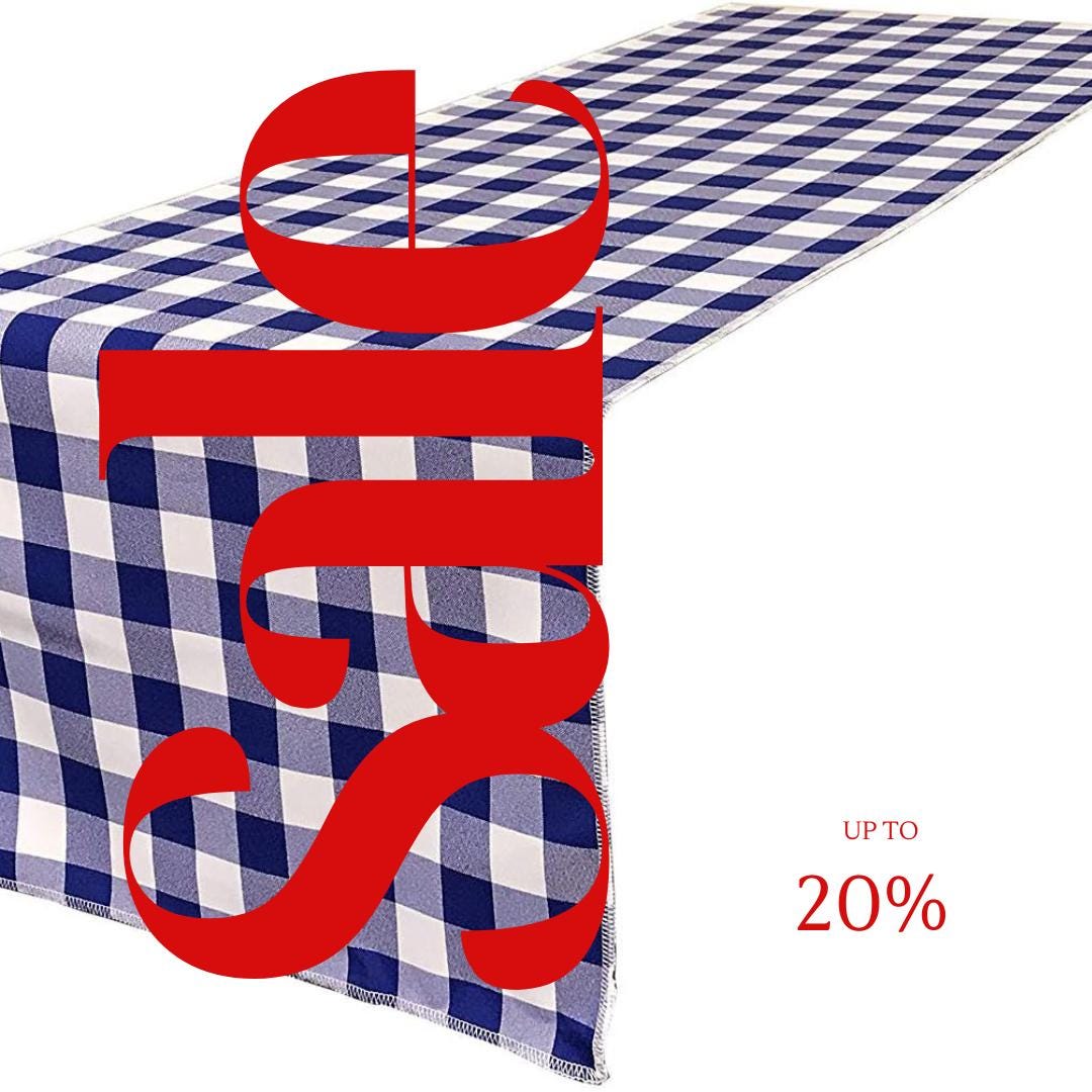14" Wide Polyester Poplin Gingham, Checkered, Plaid Table Runner (White & Royal Blue , 14" Wide x 90" Long) for Party Sweetest Day Wedding