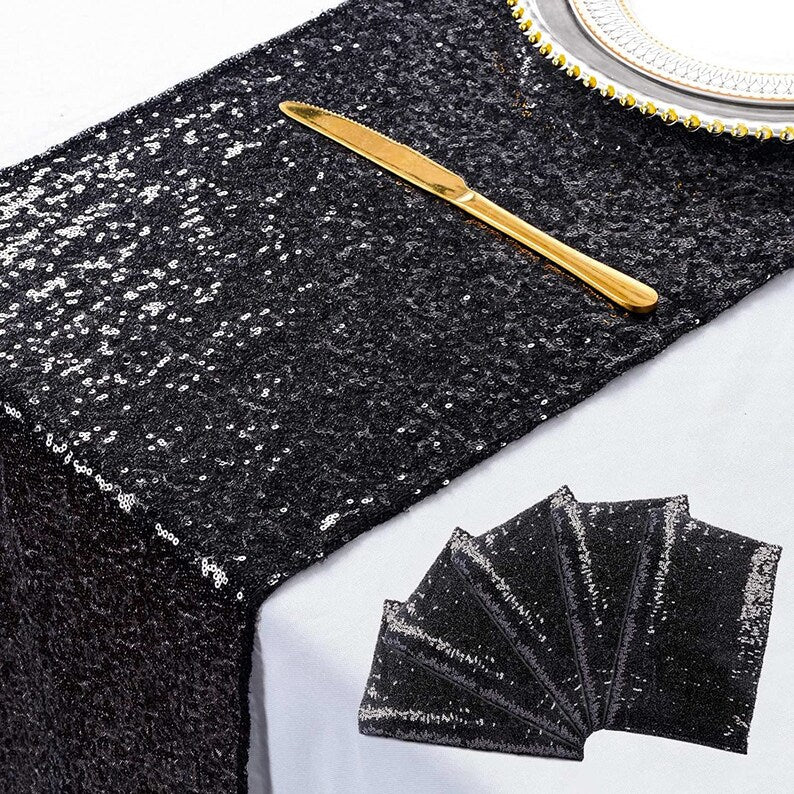 4 Pack -- BLACK - Sequin Table Runner Baby Shower Table Runner for Parties Wedding Table Runner Bridal Shower Birthday Event Table Decor