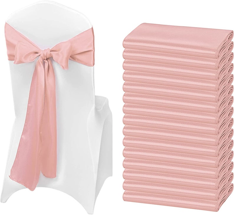 50 PCS Blush Satin Chair Sashes Bows Universal Chair Cover for Wedding Reception Restaurant Event Decoration Banquet,Party (7 x 108 inch)
