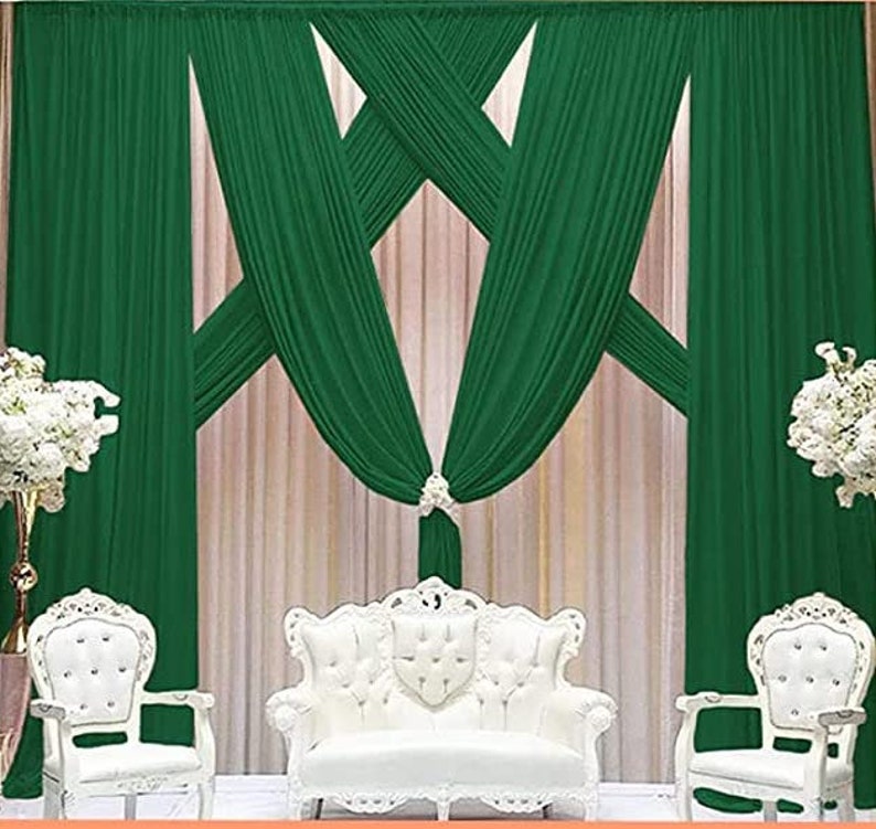 Backdrop Chiffon Curtains 20' x 30' Ft - EMERALD - 6 Panels Chiffon Backdrop Curtain Sheer Curtains Wedding Arch Draping Fabric for Party