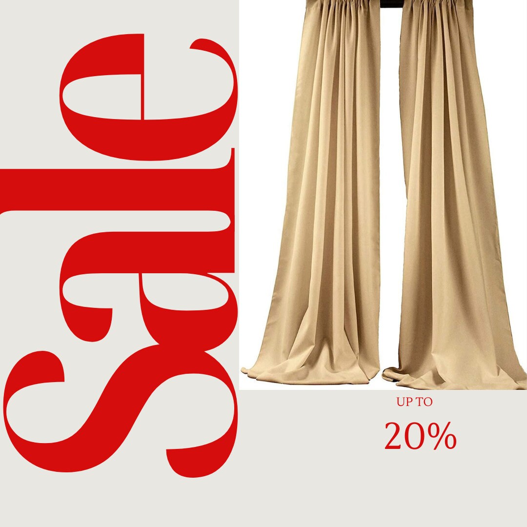 BACKDROPS - BEIGE - Polyester Poplin Backdrop Drape Curtain Panel with 4" Rod Pocket ( , 5 Feet Wide x 9 Feet High (2 Panels)
