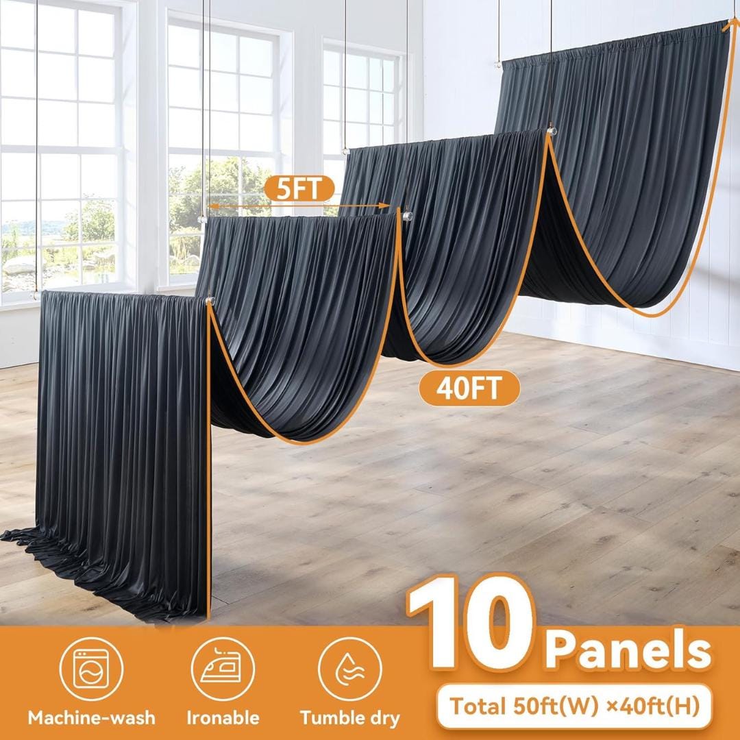 Wide Compatibility: This 40 ft tall backdrop drapes are perfect for kinds of occasions. Such as wedding reception, party decoration, baby showers, sweet birthday, photo booth, photography studio, graduation, home decoration, arch draping for backdrops and more.