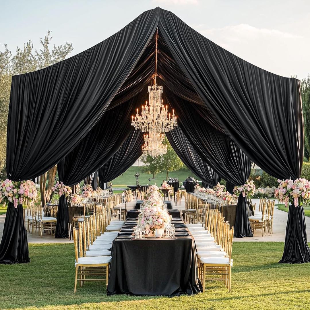 Extra-Long Brilliance: This draping fabric, allows for grand and luxurious draping panels, making it an ideal choice for creating stunning backdrops, ceiling decor and tent draping that captivate attention.