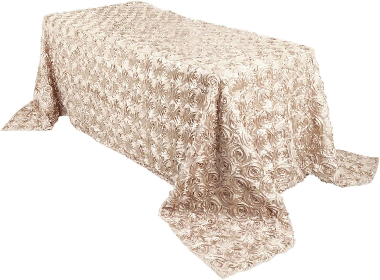 CHAMPAGNE - Rectangular Tablecloth Table Cloth Satin Rosette - 3D Floral Table Cloth for Wedding Baby Shower Birthday Tea Party Dessert