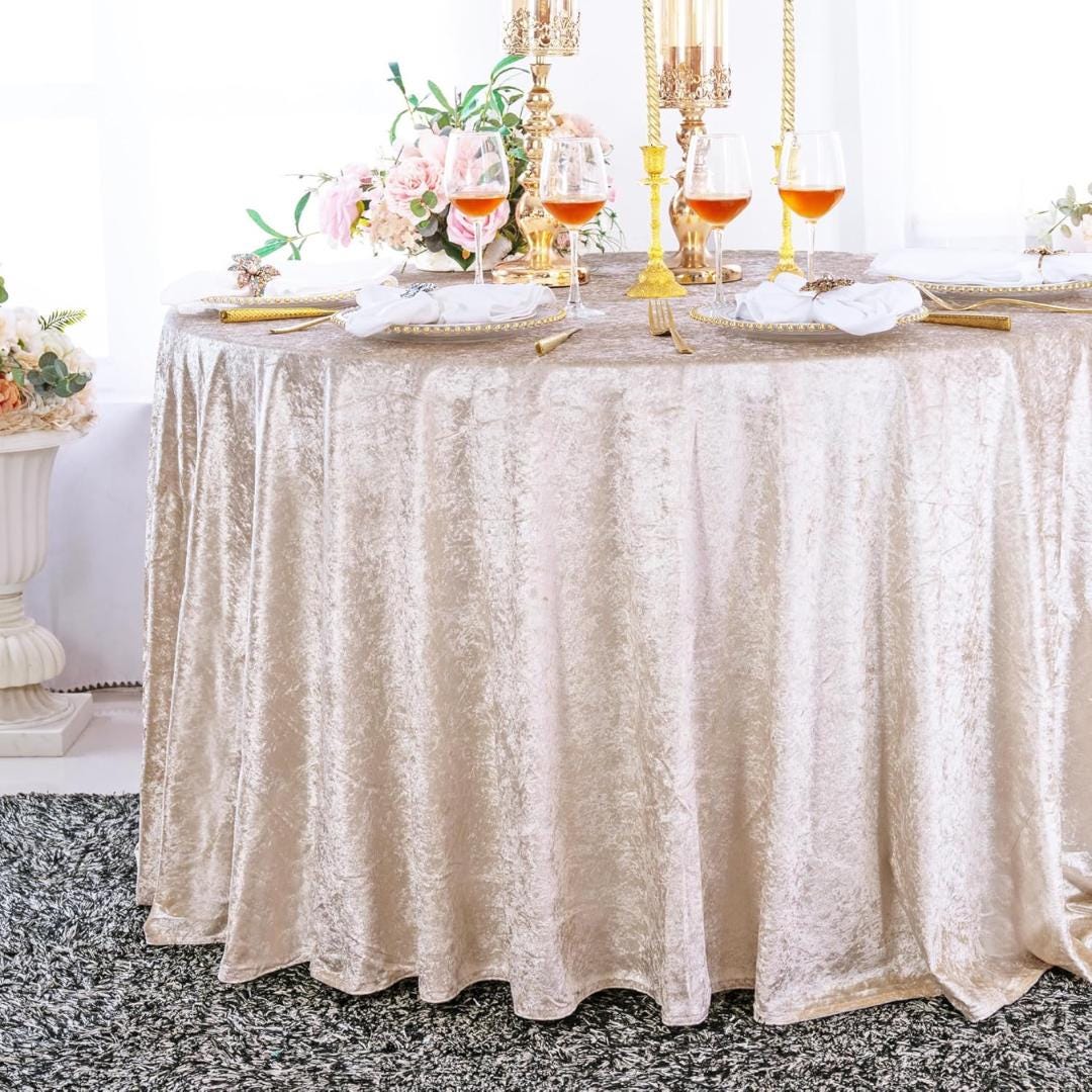 Crushed Velvet Tablecloth - CHAMPAGNE - Luxurious Round Table Cover for Weddings, Parties, Baby Showers and Events. Choose Size Below