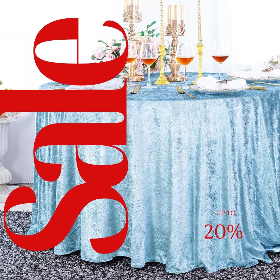 Crushed Velvet Tablecloth - LT BLUE - Luxurious Round Table Cover for Weddings, Parties, Baby Showers and Events. Choose Size Below