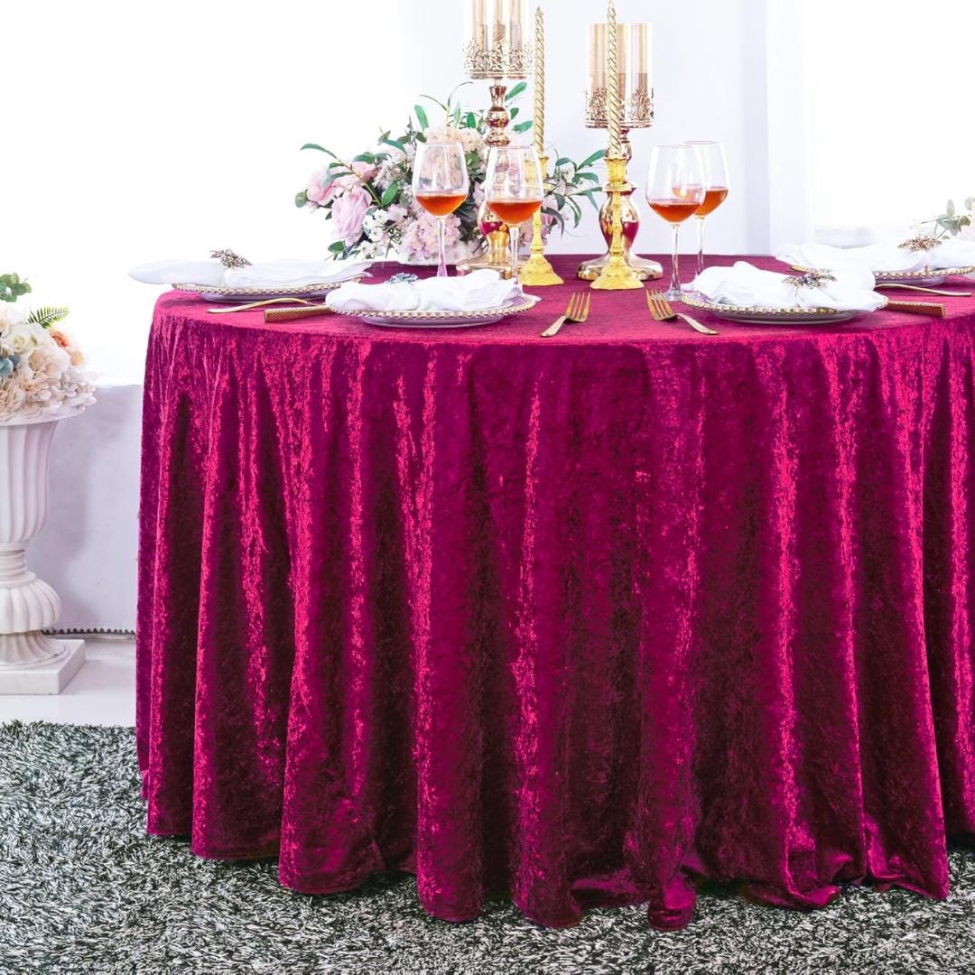 Crushed Velvet Tablecloth - MAGENTA - Luxurious Round Table Cover for Weddings, Parties, Baby Showers and Events. Choose Size Below