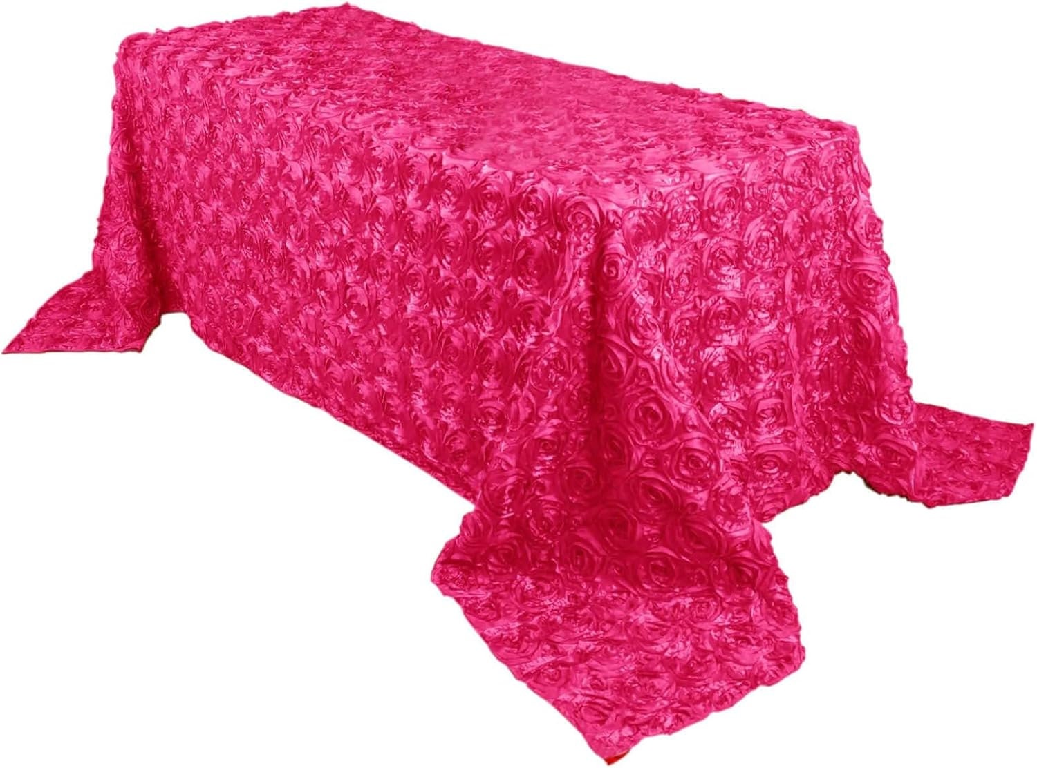 FUCHSIA - Rectangular Tablecloth Table Cloth Satin Rosette - 3D Floral Table Cloth for Wedding Baby Shower Birthday Tea Party Dessert