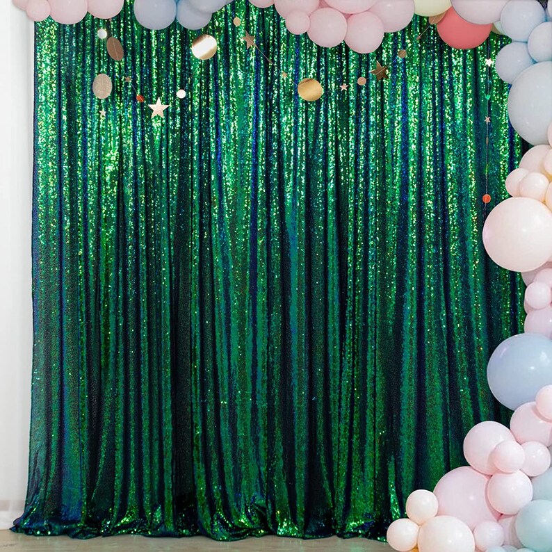 GREEN - Sequin Backdrop 1 Panel 10FT x 10FT Christmas Party Backdrop Curtains Glitter Photo Background for Wedding Baby Shower Decorations