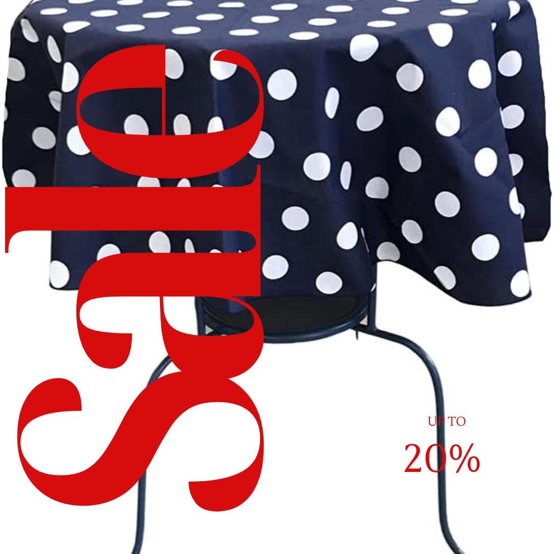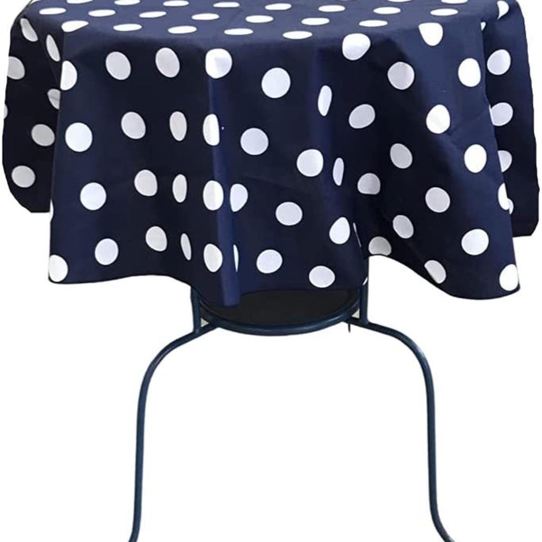 Navy/White - Polka Dot - Round Print Poly Cotton Tablecloth, Table Cover Fabric Table Cloth for Dinning, Kitchen, Party, Holiday