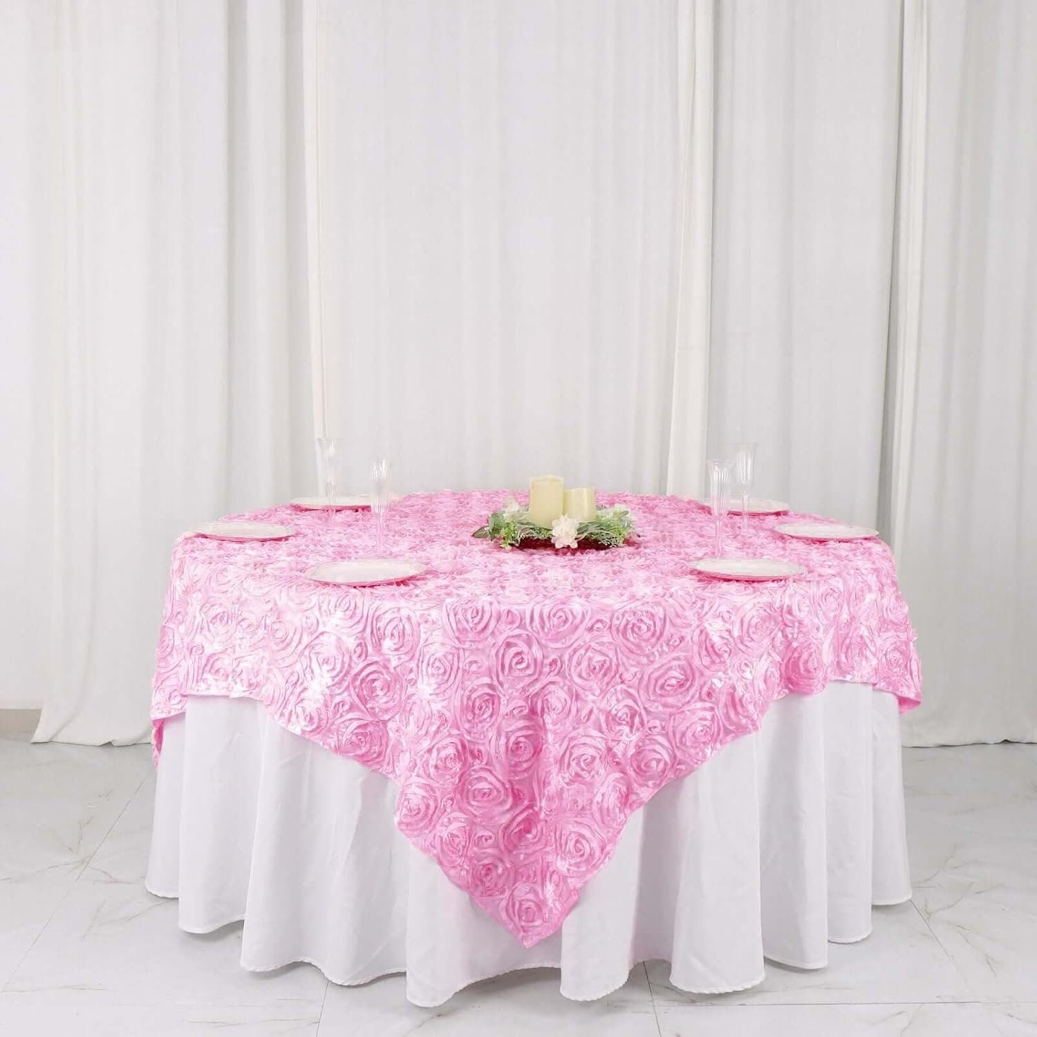 PINK - 3D Rosette Square Tablecloth Overlay- Square Tablecloth Cover for Wedding Party Event Banquet. Choose Size Below