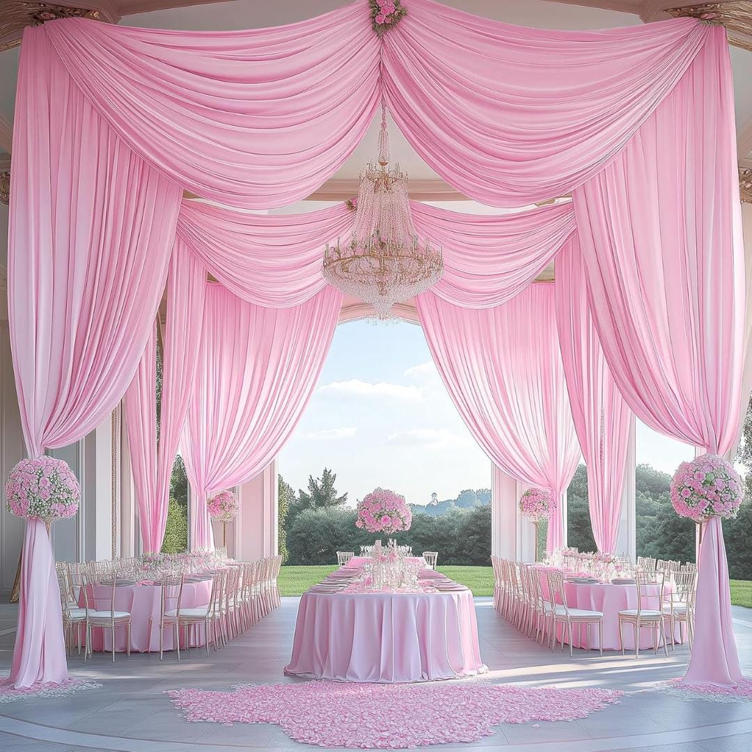 Extra-Long Brilliance: This draping fabric, allows for grand and luxurious draping panels, making it an ideal choice for creating stunning backdrops, ceiling decor and tent draping that captivate attention.