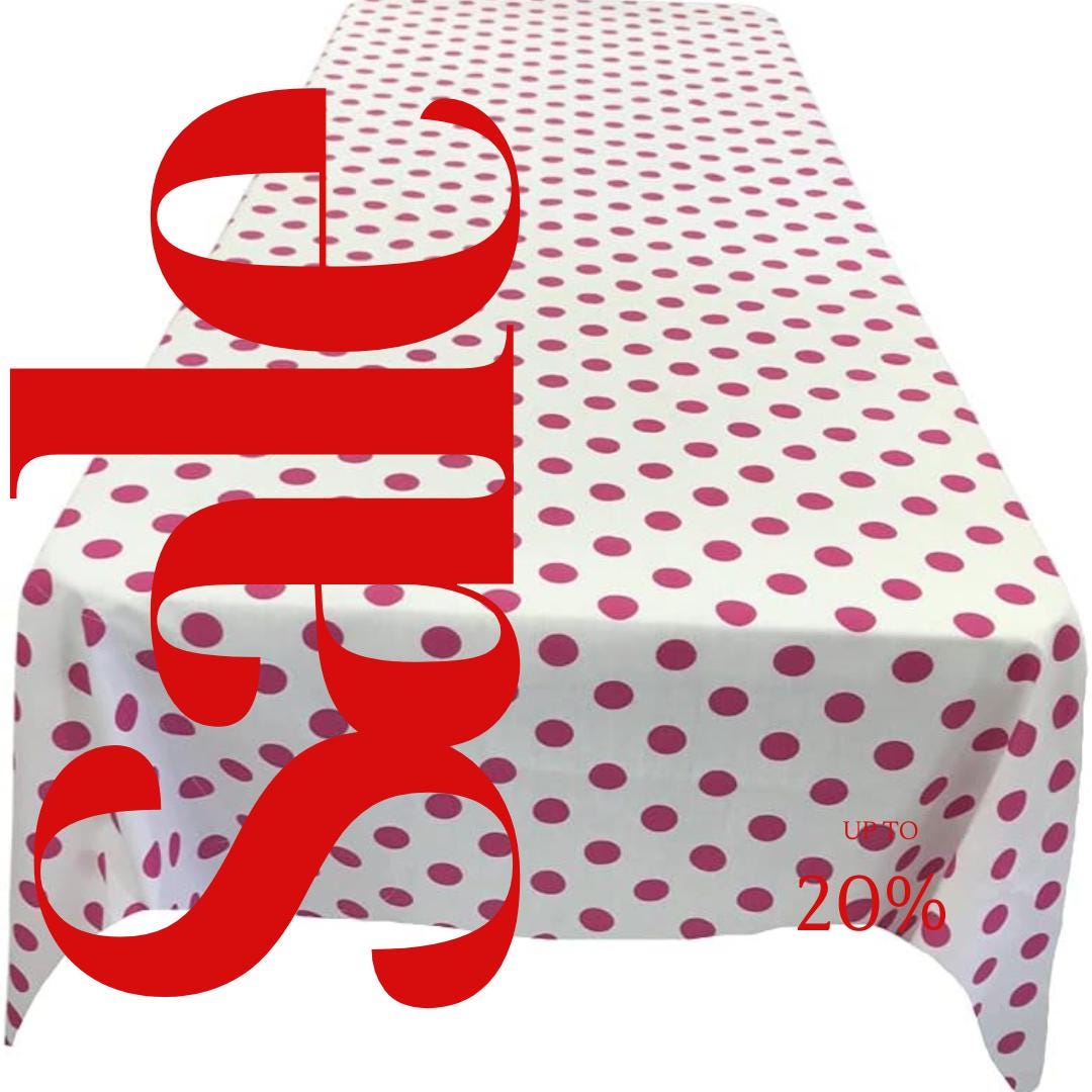 Polka Dot - Print Poly Cotton Tablecloth Table Cover Fabric Table Cloth for Dinning, Kitchen, Party. Fuchsia Dot on White