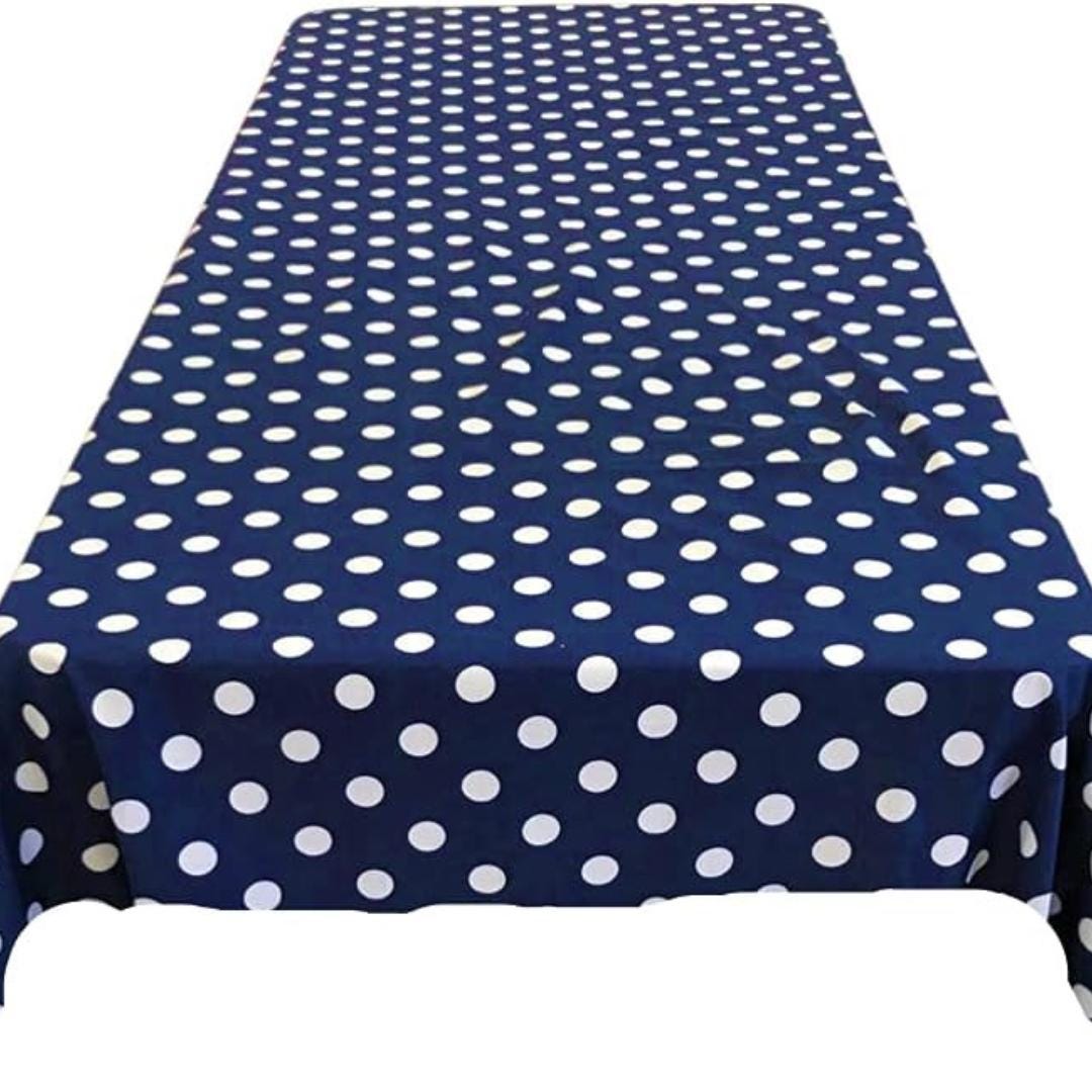 Polka Dot - Print Poly Cotton Tablecloth Table Cover Fabric Table Cloth for Dinning, Kitchen, Party. White Dot on Navy