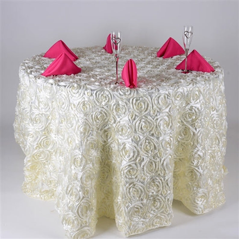 Round Tablecloth - Satin Raised Rosettes Round Tablecloth Wedding Party Dining Room Table Linens - IVORY - Christmas, Wedding, Bridal