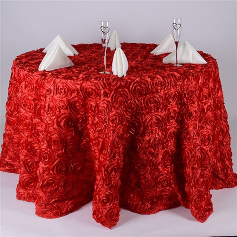 Round Tablecloth - Satin Raised Rosettes Round Tablecloth Wedding Party Dining Room Table Linens - RED - Christmas, Wedding, Bridal