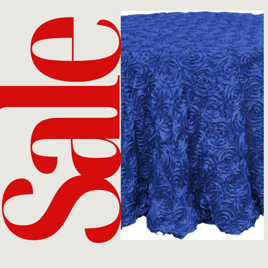 ROYAL - Round Tablecloth Table Cloth Satin Rosette Tablecloth - 3D Floral Table Cloth for Wedding Baby Shower Birthday Tea Party Dessert