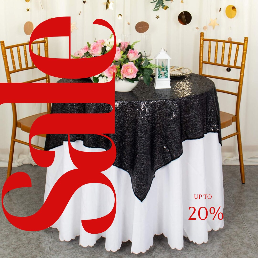 SEQUIN - Sequin Tablecloth - BLACK - Sequin Overlay Glitter Table Cover Dinning Table Linen for Party Event Decoration Birthday.