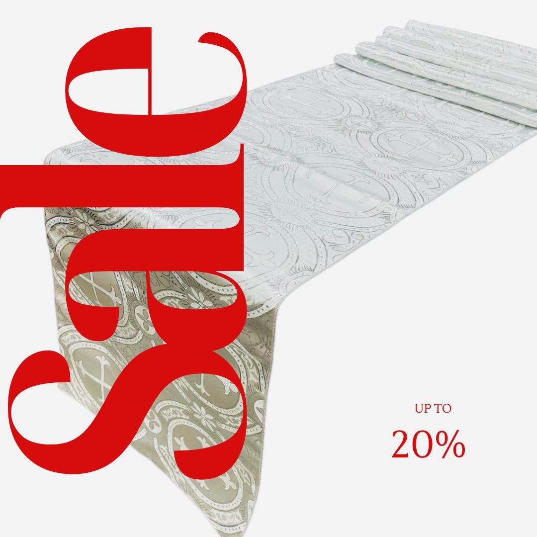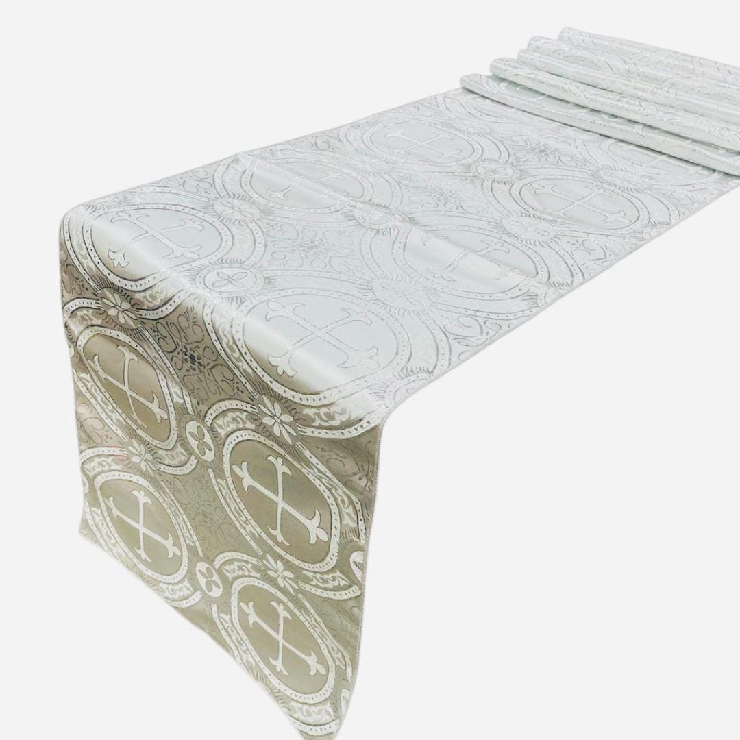 SILVER - 14" Wide X 90" Long Religious Brocade Runner Tablecloth | Liturgical Fabric | Runner Ecclesiastical Jacquard | Church | Vestment