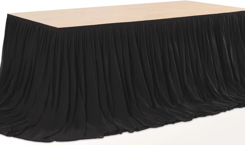 SWEETHEART - BLACK - 14ft Chiffon Table Skirt With Extra Length,Tulle Table Skirt for Backyard Lawn Wedding Dessert Birthday Party Cake