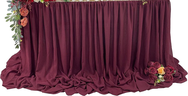 SWEETHEART - BURGUNDY - 14ft Chiffon Table Skirt With Extra Length,Tulle Table Skirt for Backyard Lawn Wedding Dessert Birthday Party Cake