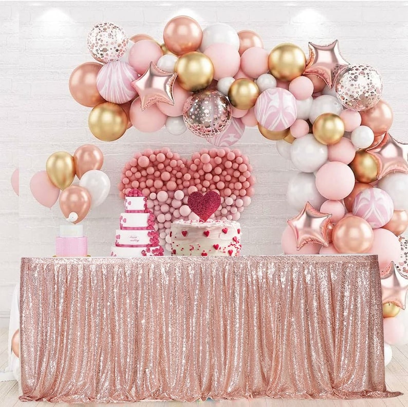 SWEETHEART - ROSEGOLD - 14ft Sequin Table Skirt for Round/Rectangle/Square Table for Birthday Party Wedding Christmas Event Party Decor