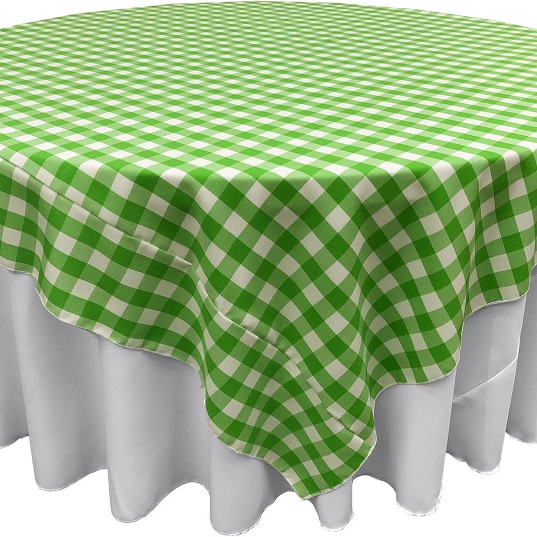 WHITE/LIME - Gingham Overlay - Checkered Tablecloth for Parties - Farmhouse Tablecloth - Spring Tablecloth - Picnic Tablecloth