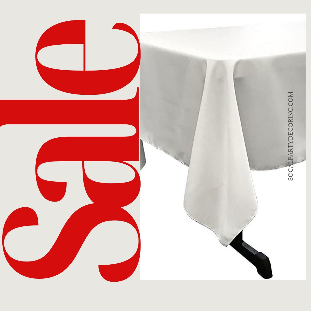 WHITE - Polyester Poplin Washable Rectangular Tablecloth, Stain Wrinkle Resistant Table Cover Fabric Table Cloth for Dinning, Kitchen, Party
